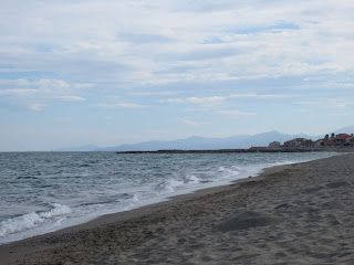 This beach was reached by means of bike. 10 Kilometers and a bike path, for the most part. The first time we rode to the shore we left at shortly after 5pm and arrived at shortly after 6. We rode back in the dark. The second time we rode to the shore, it was dark before we even got to the beach. That's the glory of it! One is so close to the water, it's worth it just for a late night bike ride and stroll! And dip, if one pleases.